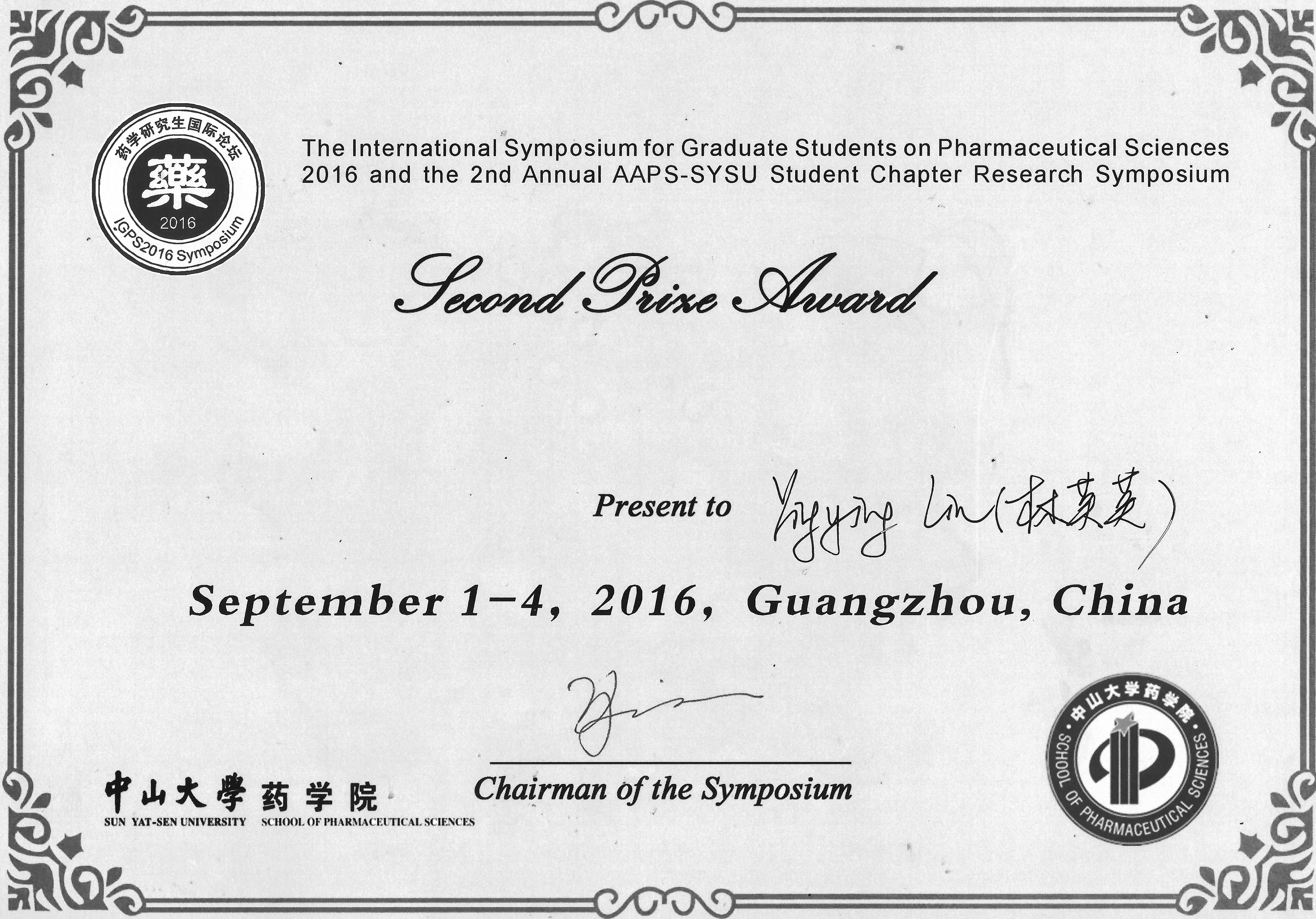 应中山大学研究生处及中山大学药学院的邀请,我院吴彩胜老师带领三名同学参加2016年国际药学研究生学术论坛,该论坛于2016年9月1日到4日举办。本次论坛设立6个专题,分别为:药理学,药剂学,药物化学,药物分析学,生药学,微生物与生化药学。会议交流形式有研究生学术报告,专家报告和墙报等,吸引了来自世界各地的药学研究生。