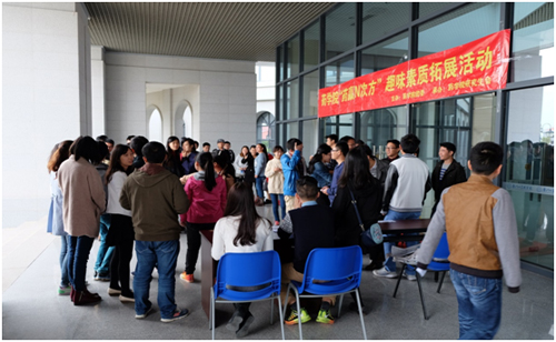 活动的第一个环节为破冰之行。参与者通过“听声识人”和“抢人大战”等游戏项目,迅速消除了彼此的生涩,增进了认识和了解;在“一块五毛”的游戏中,同学们手拉手围成圈,抱成团,温暖之感油然而生;在“萝卜蹲”和“脚踩气球”活动中,参与同学已经被紧张而欢乐的游戏深深吸引,完全融于其中,小组团队形成的各种欢呼夹杂着呐喊声,将活动推上了高潮。