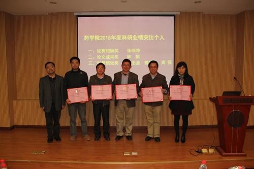 会上学院党委书记黎永强做了2015年药学院党委工作总结并做了2016年工作计划。2015年,学院党委认真贯彻落实中央和学校的精神,认真开展“三严三实”专题教育,切实加强思想作风建设,坚定方向,科学谋划,深化改革,有力推动了世界知名国内一流药学院建设。2016年学院党委将深入落实“四个全面”战略布局和五大发展理念,以深化综合改革为动力,全面落实抓党建责任,坚持从严治党,为学院“十三五”规划的顺利实现,推动学院的事业发展,提供坚强的政治和组织保障。