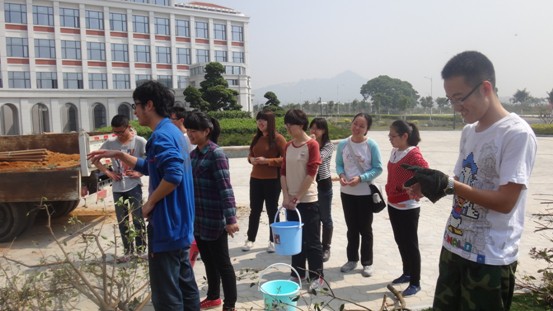 在一个上午的辛勤劳作之后,临近11点,植树活动圆满结束,药学院大楼前的草坪已经种上了树一棵棵整齐的小树苗,相信在这个春天过后它们便会抽出新枝桠,让翔安多一片绿色、多一些生机。