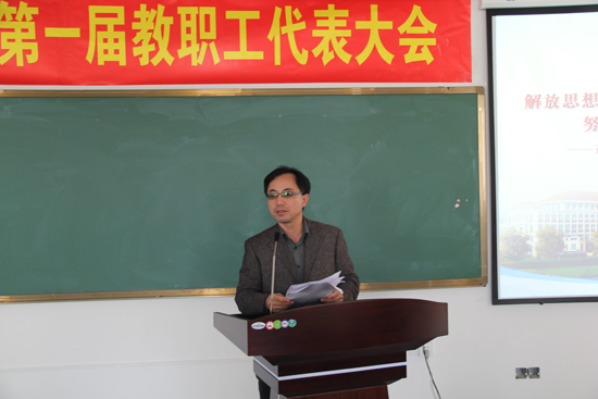 下午一时,大会在雄壮激昂的国歌声中开幕。院党委书记黎永强致开幕词。他代表学院党委向大会的召开表示热烈的祝贺。他指出:教代会是教职工参与民主管理的基本制度,对推动学院的科学发展具有重要意义。加强教代会建设必须始终坚持党的领导、教职工当家作主和依法治校的有机统一。学院一定要充分发挥教代会和工会的重要作用,以十八大精神为指引,努力凝聚力量、促进和谐、推动学院科学发展。