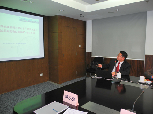 会上,我院张晓坤院长汇报了共建“生物医药转化及新药开发中心”的思路和建设规划,详细介绍了我院代表性科研成果“创新靶点抗癌药物K-80003”项目。公共卫生学院夏宁邵院长、化学化工学院卢英华副院长、生命科学学院李庆阁教授、海洋与环境学院王克坚教授也分别介绍了本学院在医药健康领域所做的工作、取得的科研成果、可产业化和具有产业化前景的项目。