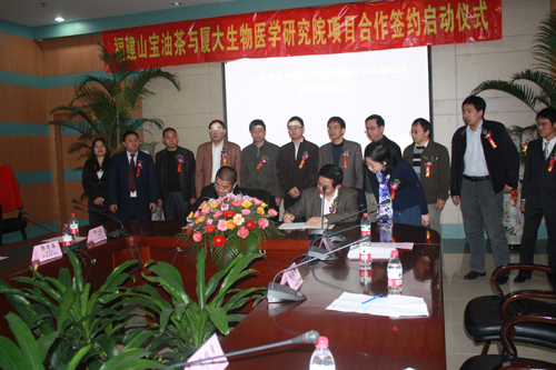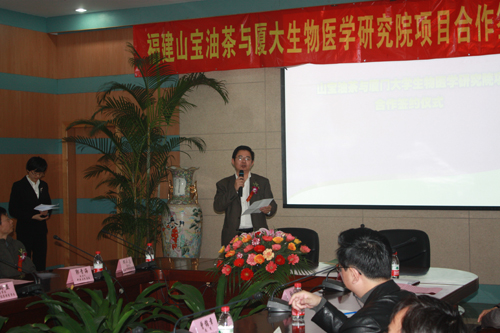 经过深入的交流洽谈,3月14日,我院与福建山宝油茶有限公司携手合作,正式成立“厦门大学生物医学研究院―山宝油茶生物技术研发中心”,对茶油功能性成分及保健、抗癌作用进行专项研究。