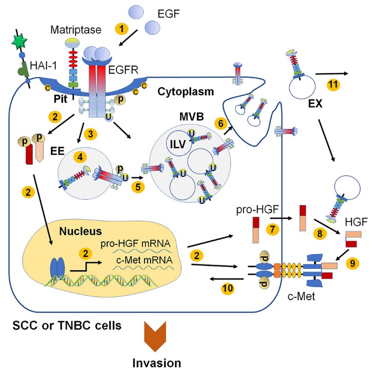 Hu Zhou | Cell Reports: Endocytic activation and exosomal secretion of matriptase stimulate the second wave of EGF signaling to promote skin and breast cancer invasion