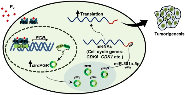 Wen Liu | Theranostics: Estrogen-induced circRNA, circPGR, functions as a ceRNA to promote estrogen receptor-positive breast cancer cell growth by regulating cell cycle-related genes