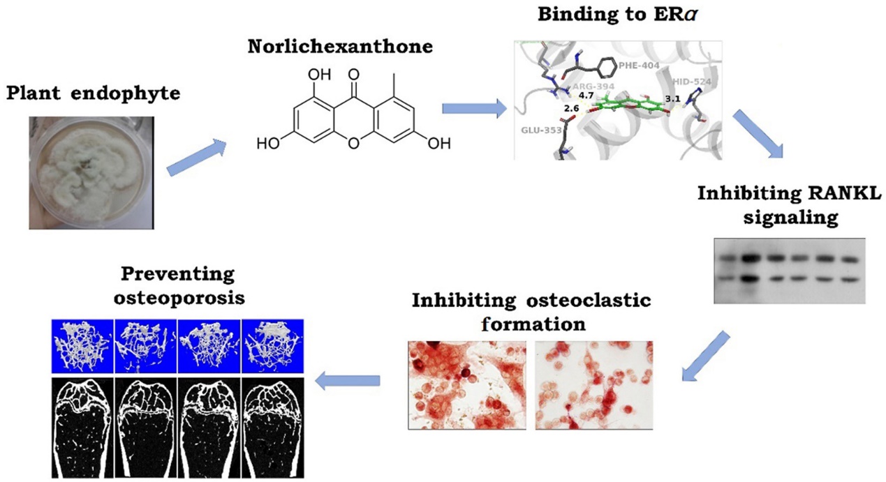 Hu Zhou, Ting Lin | Acta Pharmaceutica Sinica B: Norlichexanthone purified from plant endophyte prevents postmenopausal osteoporosis by targeting ERα to inhibit RANKL signaling