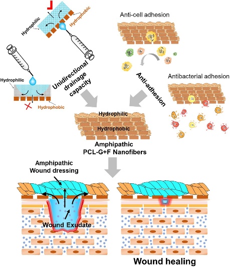 Yun-Long Wu, Caisheng Wu | Chemical Engineering Journal: Engineered Janus amphipathic polymeric fiber films with unidirectional drainage and anti-adhesion abilities to accelerate wound healing